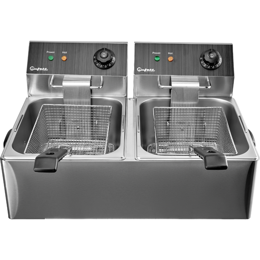 Электрическая фритюрница Bufett CFR 145 - это компактное и эффективное оборудования для профессиональной кухни, идеально подходящее для приготовления различных видов блюд во фритюре. Прибор оснащен двумя регуляторами температуры, что позволяет готовить разные блюда одновременно и индикаторами нагрева масла. В комплект входит 2 крышки для корзин (чаш), предназначенные для сохранения чистоты и тепла, а также 2 сливных крана для слива масла.